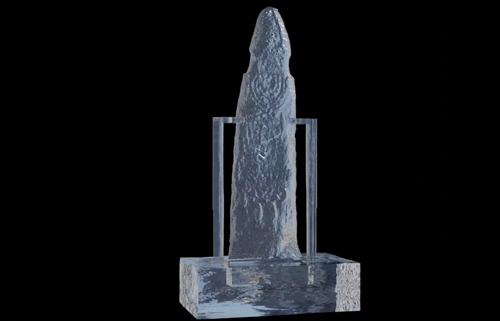 Η ολογραμματική προβολή «Ανάδυση» στο πρώτο μέρος ξεκίνησε με 3D animation 8,30 λεπτών. Για τις ανάγκες της οπτικής ψευδαίσθησης της ανάδυσης από το νερό, δημιουργήθηκαν σε τρισδιάστατη μορφή τα κάτωθι σημαντικά τοπόσημα, μνημεία και εκθέματα που χαρακτηρίζουν την πολιτιστική ταυτότητα της Λάρισας: