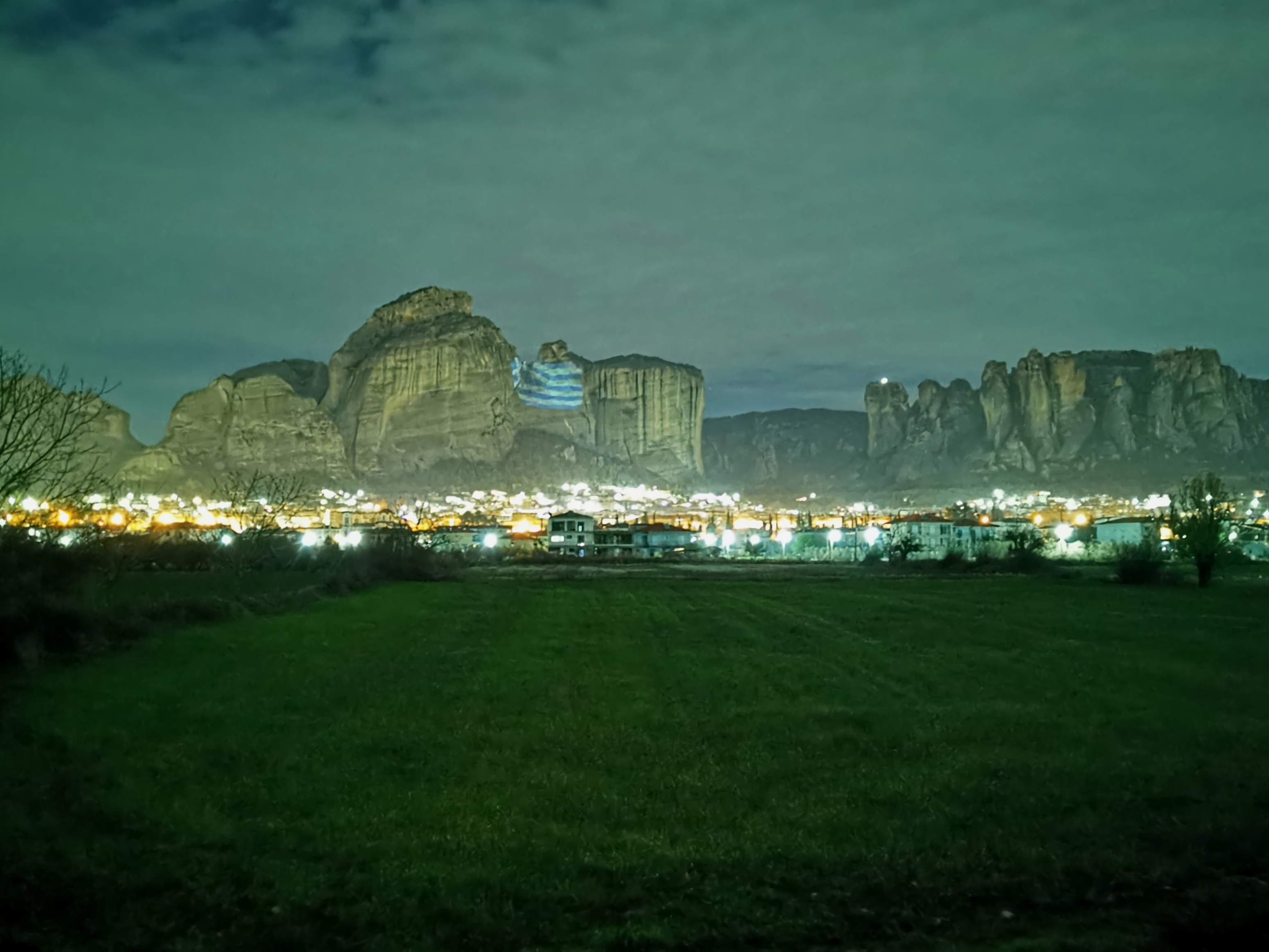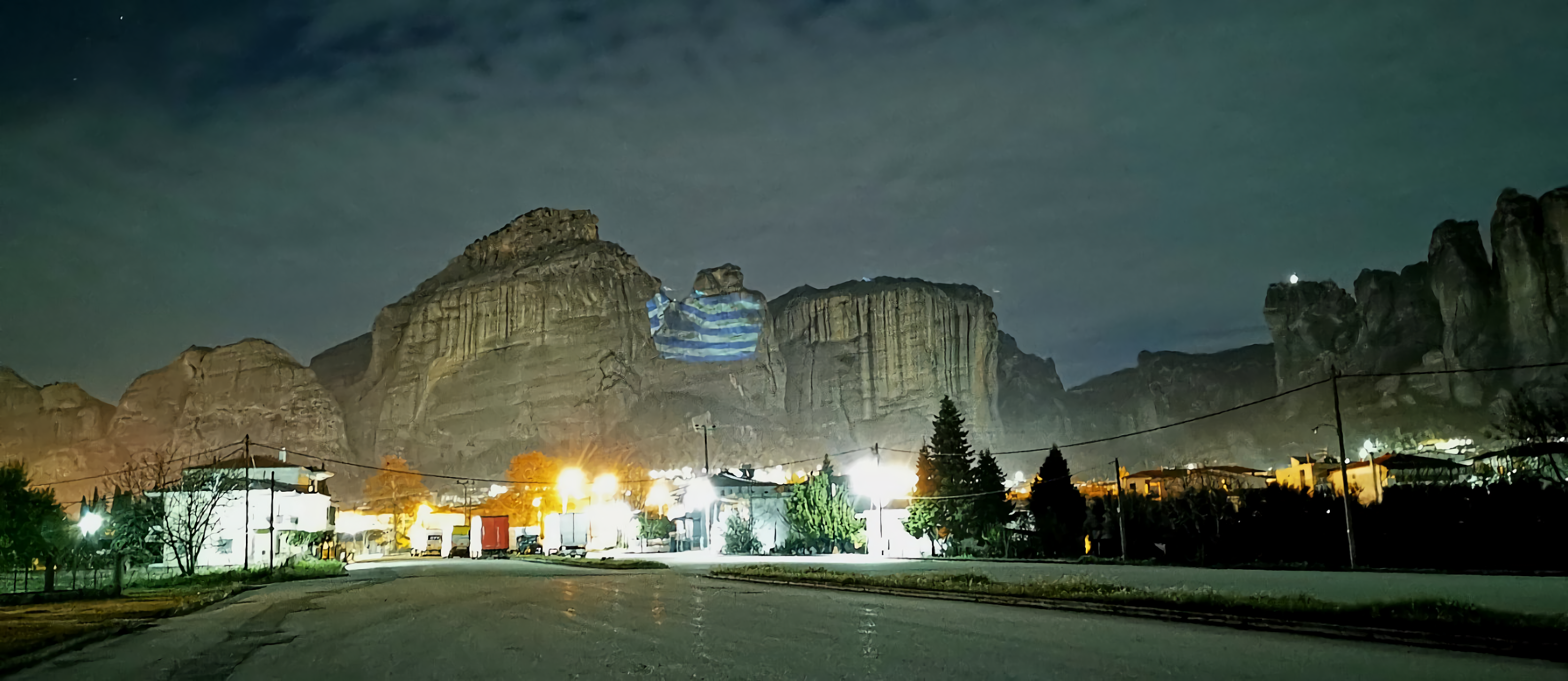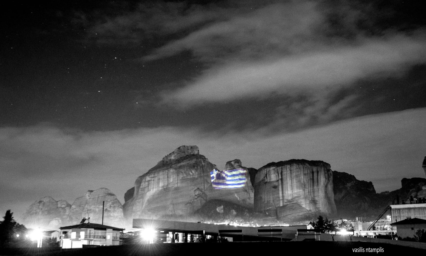 Προβολή της Ελληνικής Σημαίας στα Μετέωρα την 25η Μαρτίου
